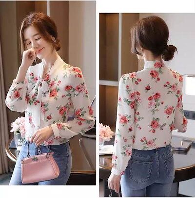 レディース トップス シャツ ブラウス 長袖 ボウタイ スリム 細身 Iライン シフォン ボタン 薄手 かわいい きれいめ 上品 おしゃれ ガーリー エレガント 存在感 ラブリー クラシカル ロマンテ