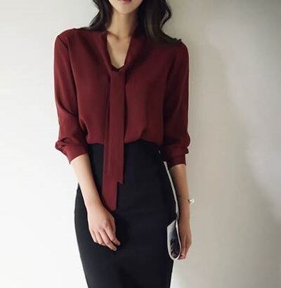 レディース トップス シャツ プルオーバー 長袖 ボウタイ シフォン 大人可愛い きれいめ シンプル カジュアル 上品 おしゃれ こなれ感 ガーリー クール エレガント とろみ感 キュート ナチュラル