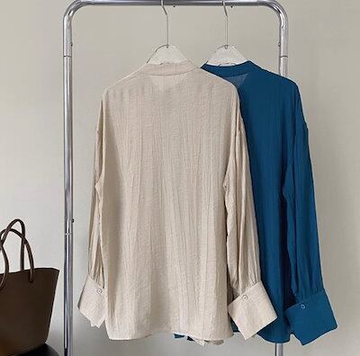 長袖シャツ レディース シャツ トップス 長袖 クロスデザイン フロントボタン ルーズ ミドル丈 スタンドカラー 個性的 シンプル 無地 カジュアル お出かけ おしゃれ ナチュラル 女性