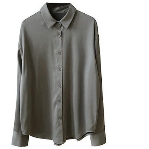 ブラウス 長袖シャツ カラーシャツ 光沢 シンプル レディース とろみ シャツ サテンタッチ ドロップショルダー ドレープ 無地 きれいめ カジュアル オフィス おしゃれ オールシーズン