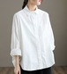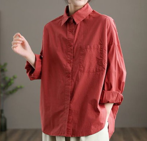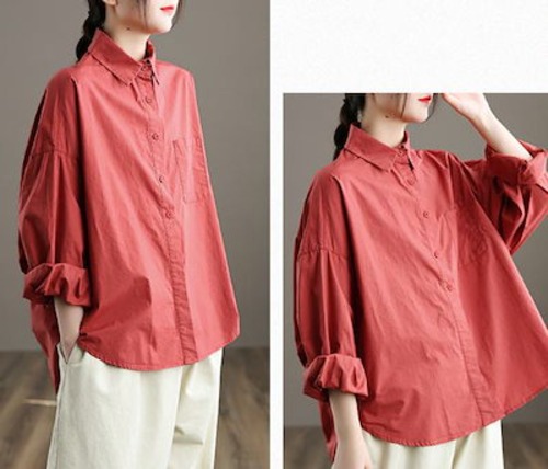 長袖シャツ ブラウス 長袖ブラウス サイズ 体形カバー レディース 春秋服 新作 シャツ トップス フロントボタン 襟あり シンプル 無地 胸ポケット カジュアル きれいめ 綿 コットン オフィス デ
