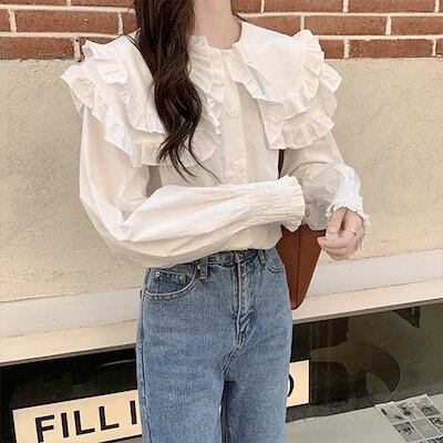 ブラウス レディース 長袖 フォーマル ビックカラー トップス シャツ フリルブラウス 春夏 フェミニン ガーリー おしゃれ オトナ女子 きれいめ デイリー お出かけ 韓国 通勤 通学 女子会 デート