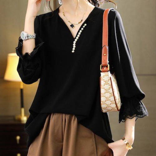 ブラウス レディース 長袖 おしゃれ シフォンブラウス シフォンシャツ シフォン きれいめ 長袖ブラウス 大きいサイズ 3XL 黒 ブラック トップス ふんわり とろみ かわいい オフィス 通勤 パー