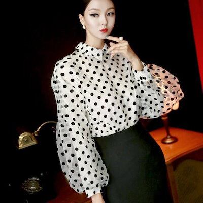 ブラウス レディース 白 シャツ 長袖 シフォン ドット トップス 春 夏 可愛い ブラウス レディース 白 シャツ 長袖 シフォン ドット トップス 春 夏 可愛い
