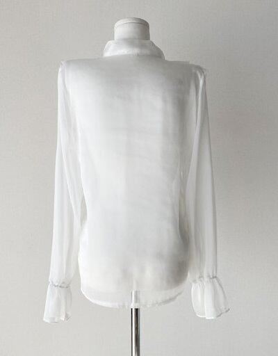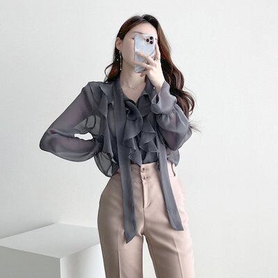 シフォンシャツ レディース シャツ 大きいサイズ 無地 トップス 長袖 XS S M L 春 夏 ホワイト グレー Vネック レトロ 通勤 通学 学生 社会人 OLシャツ 10代 20代