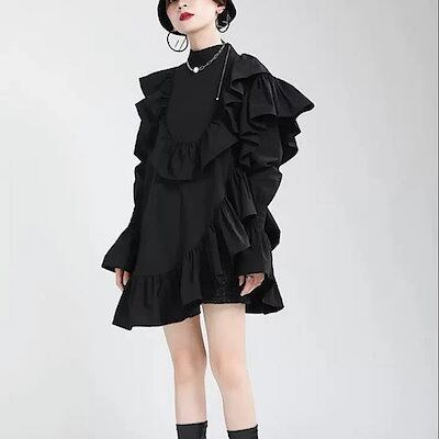 シャツレディース ブラウス長袖 シャツ長袖 シャツブラウス フリル付 秋冬きれいめ 20代 30代 レトロ ランダム フリル 大きいサイズ ビッグシルエット ビッグ ドレス フリルドレス かわいい 奇