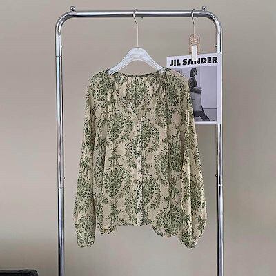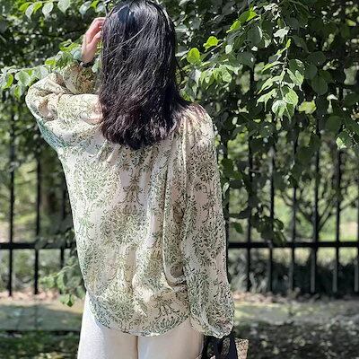 トップス シャツ ブラウス レディース 長袖 ボリューム袖 Vネック 透け感 シースルー アメカジ かわいい 大人可愛い カジュアル おしゃれ レトロ アジアン エスニック エキゾチック こなれ感 抜