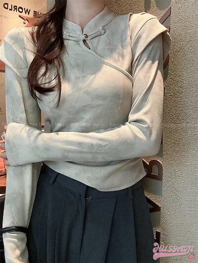POLICE2024春夏 長袖Tシャツ女性春レトロデザイン ディスクバックルセンススリムボトムシャツシックショートトップス