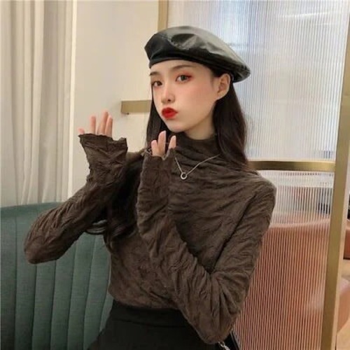 ファッションプリーツックプルオーバーブラウスレディース23新型韓国風スリムトップス長袖