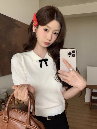 2024春夏トップス Tシャツ ニット 丈短め スリム 細見え 夏 かわいい おしゃれ 韓国ファッション レディース お出かけ