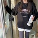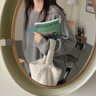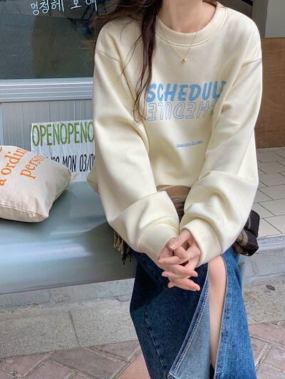 2024 秋冬 トップス厚手 裹起毛 防寒あったか長袖TシャツかわいいK-POPレディース韓国風ロゴ衣装ルーズゆったりカジュアルおしゃれサイズ袖シルエットファッション系サイドシャツフット春スポーツT