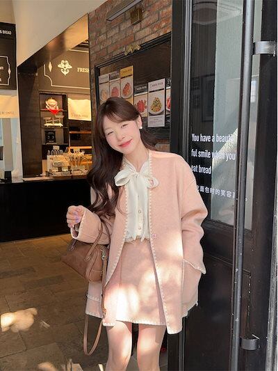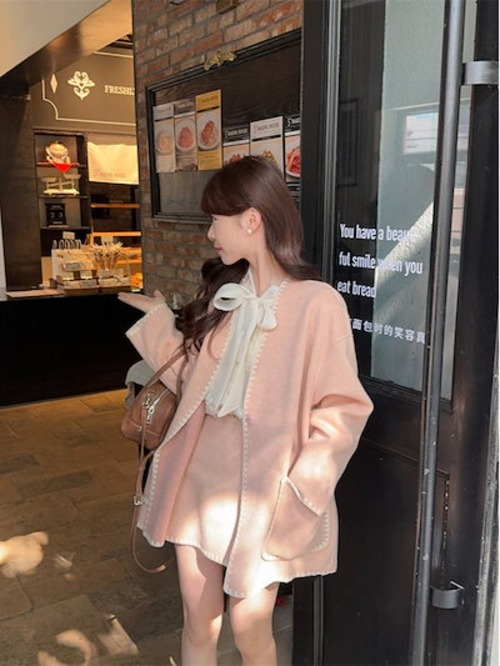 2024秋冬 レディース アウターきれいめ 韓国っぽ トップス&ミニスカートショート OL 通勤丈オフィスコートファッション系女っぽカジュアルロング大人羽織りフレンチ上下コーデ春襟