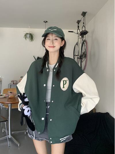 秋冬トップスバイカラー長袖TシャツかわいいK-POPレディース刺繍配色韓国風ロゴ衣装ルーズゆったりカジュアルおしゃれサイズ袖シルエットファッション系スポーティーシャツベース春スポーツトラックガーリー