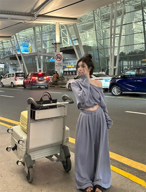 2024 秋冬 韓国 かわいい レディース 無地 普段使い長袖トップスレトロ上下セット _白パーカーブルサイズ丈春カジュアルスポーツファッション系通学学生袖お出かけアップシルエットトラック羽織り