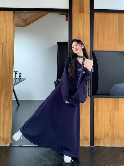 2024 秋冬 韓国 かわいい レディース 無地 2way トップス長袖レトロ上下セット_白パーカーブルサイズ丈春ロングカジュアルスポーツファッション系通学学生袖お出かけアップシルエットトラック羽織り