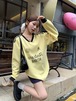 2024 秋冬トップスバイカラー長袖TシャツかわいいK-POPレディース韓国風ロゴ衣装ルーズゆったりカジュアルおしゃれサイズ袖グラフィックシルエットファッション系サイドシャツフット春スポーツVネックT