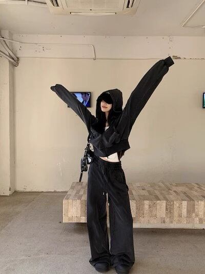 2024 秋冬 韓国風 かわいい レディース 無地 フード付き長袖アウターレトロセット_白フーディーブルサイズ丈トップス春カジュアルスポーツファッション系通学学生加工袖お出かけアップシルエットトラック