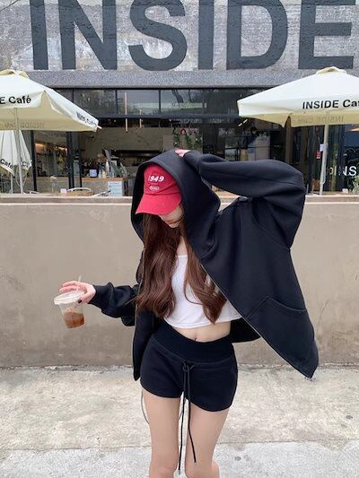 2024 秋冬 韓国 かわいい レディース 無地 フード付き長袖アウターレトロセット_白フーディーブルサイズ丈トップス春カジュアルスポーツファッション系通学学生袖お出かけアップシルエット袖トラック