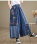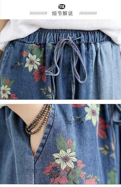 「ファットガール」 夏 デニム ワイドパンツ 刺繍 レトロ 薄手 ドッキング ワイドパンツ 体型カバー 大きいサイズ ゆったり レディース