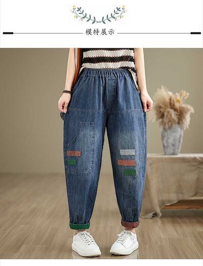 「ファットガール」 夏 刺繍 デーパードパンツ 薄手 デニムパンツ ジーンズ ゴム 体型カバー 大きいサイズ ゆったり レディース