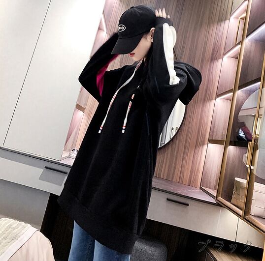 スウェット トレーナー 長袖 切り替え 体型カバー 着痩せ バイカラー 帽子付き 【大きいサイズあり】
