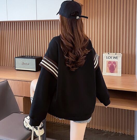 全2色 スウェット トレーナー 長袖 切り替え バイカラー 体型カバー 着痩せ シンプル