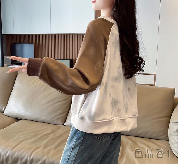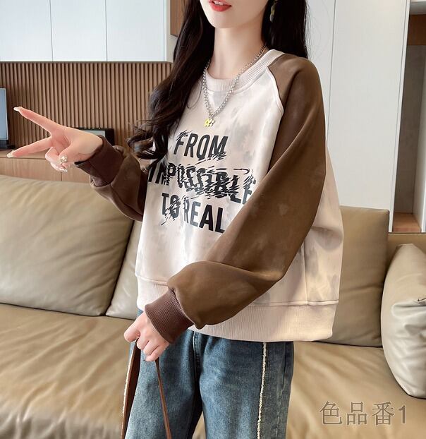 全2色 スウェット トレーナー 長袖 切り替え バイカラー 体型カバー 着痩せ LOGO ロゴ 英字 【大きい