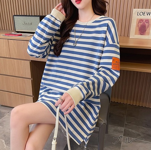 全2色 スウェット トレーナー 長袖 切り替え バイカラー 体型カバー 着痩せ ボーダー柄 【大きいサイズあり