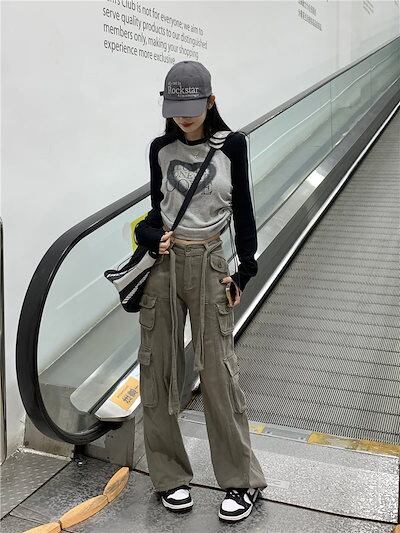 2024春夏 Tシャツ ショート カットソー 長袖 トップス カジュアル 配色 韓国ストリート タイト スリーブ 肌見せ T ファッション かわいいトップス