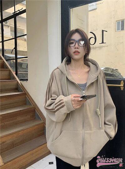選べる2タイプ 薄手 厚手 裹起毛 パーカー フード付き羽織りスタイルアップ女っぽ きれいめ 大人っぽ 上品 サイズゆったりカジュアルトラックストリートシルエットスリーブ通学 学生ファッション秋冬春
