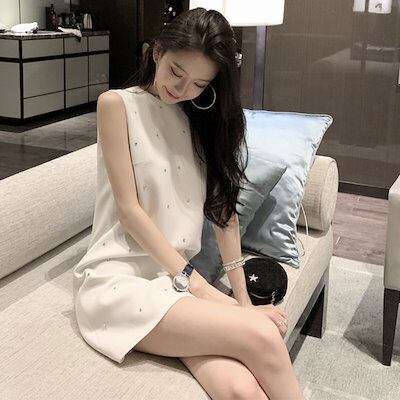 2024 春夏ノースリーブビジュー付きAラインワンピース