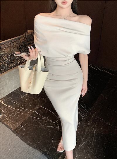 2024 春夏 ロングワンピース ロング丈 ワンピース 長袖 ファッション フィット カジュアル パーティー きれいめ ハイ ハーフリブフレンチスタイルアップ 色っぽ 女っぽ カジュアル大人