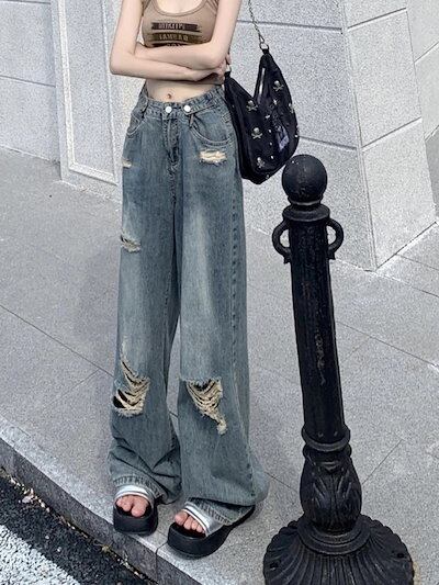 2024夏 韓国 デニムパンツ ボトムス ジーンズ ファッション系スタイル ゆるダボ ジーンズ シルエット加工 カジュアル メンズライク