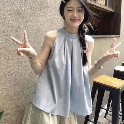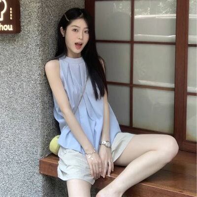 2024春夏ノースリーブ ベストシャツ トップス 韓国ファッション