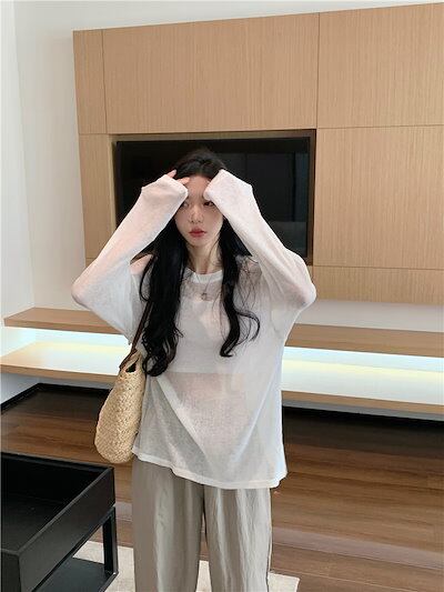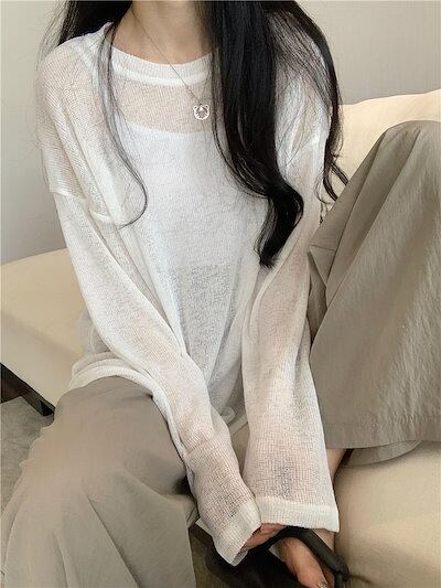 2024春夏 ニットトップス レディース長袖 韓国ファッション 可愛い ニット プルオーバー セクシー ニット ショート丈トップスおしゃれ 薄手透け感 クロシェ ニット ニッ