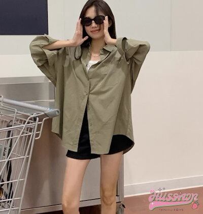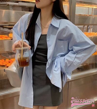 リボン シャツ トップス ブラウス ショート 長袖 ゆったり シンプル ベーシック ストリート フレンチ カジュアル きれいめ バックシャン