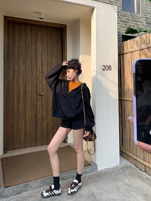 2024 秋冬トップス韓国 パーカー フード付き 羽織りレディース女っぽきれいめ大人っぽ上品 サイズゆったりカジュアルハーフショートパンツシルエットスリーブかわいいファッション系春3点セットアップ