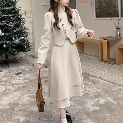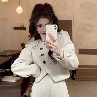 2024 秋冬 セットアップ 韓国 厚手 ラシャ 二点セット スーツ+スカート ジャージ ショット丈 ジャケット 韓国 レディース