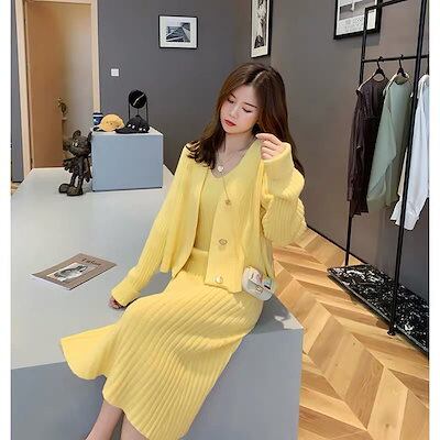秋冬 ファッション カーディガン レディース ニットアウター +ワンピース 体型カバー セーターセット