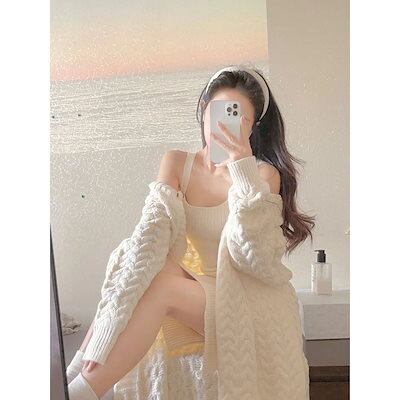 ニットカーディガン レディース プルオーバー秋 冬 長袖 アウター +ニットキャミソール 2点セット