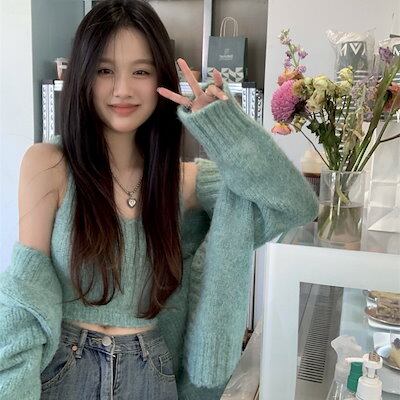 秋冬 カーディガン レディース 前開き ニットアウター +キャミソール 長袖 トップス セットアップ