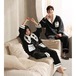 パジャマ レディースブラックロングパイルの繊維復古カップルパジャマ2点セット冬フリース裏起毛?厚メンズルームウェア韓国新作 QYSY60