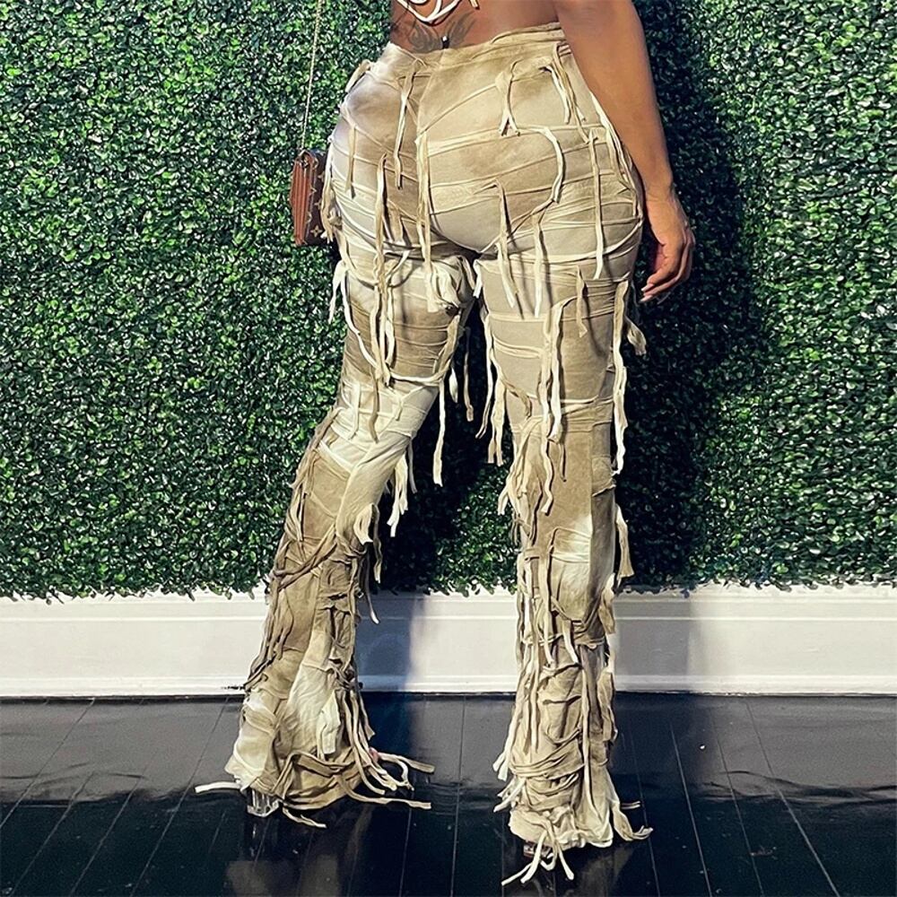 Cutenova-女性のためのスリムなスクエアパンツ、ハイウエストパンツ、ネクタイ染め、衝突タッセル、スリムパンツ、カジュアルストリートウェア、ファッション、秋 y2k ボトムス T240901122521_01