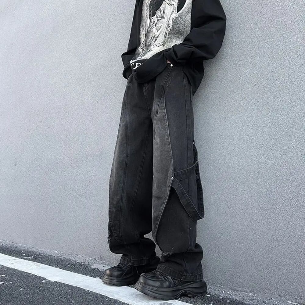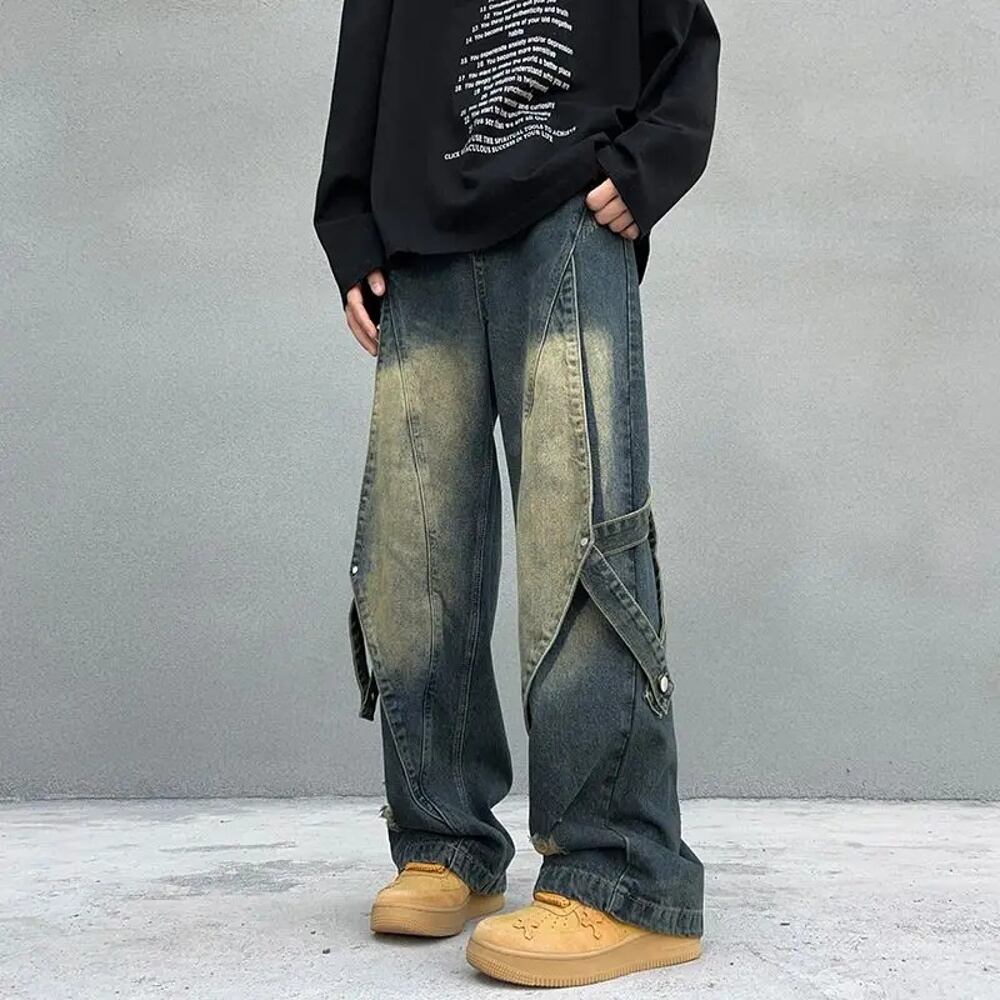 男性と女性のための色あせたルーズジーンズ,アメリカンストリート,ストレートレッグ,ハイエンドデザイン,レトロなマイクロフレア,カジュアルパンツ,y2k,秋 y2k ボトムス T240901123716_02