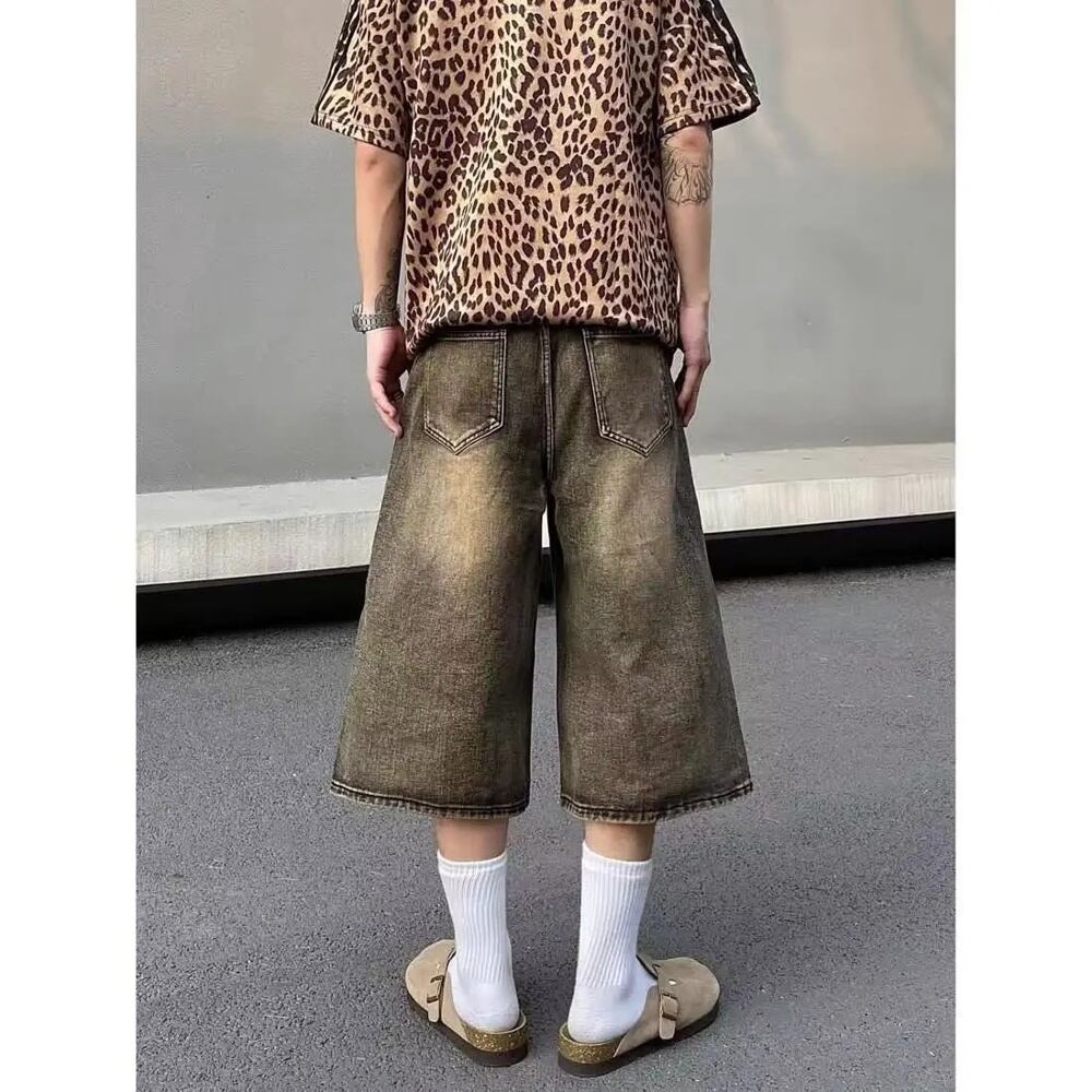 アメリカンレトロクロップドワイドレッグジーンズ、ウォッシュドルーズストレートカジュアルカップショーツ、ゴシックスウェットパンツ、y2k y2k ボトムス T240901124353_02
