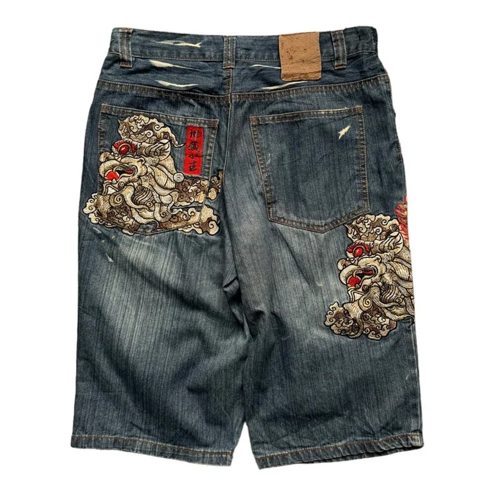メンズ刺embroideredデニムショーツ,ルーズフィット,カジュアル,原宿,パンク,ストリートウェア,新作コレクション,y2k y2k ボトムス T240901124829_10