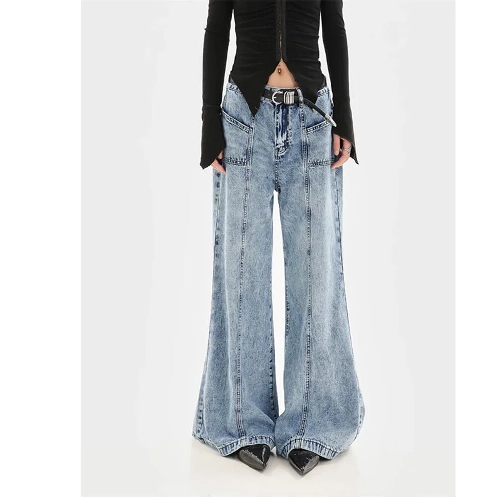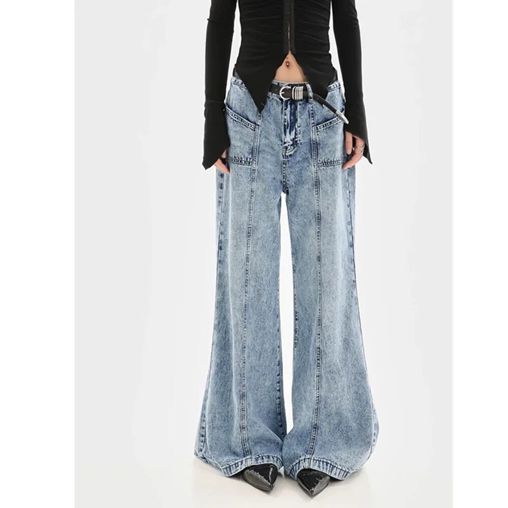 レディースカジュアルデニムジーンズ,ヴィンテージエモ,ルーズウォッシュドパンツ,ワイドレッグ,パンク,バギー,ブルー,2024 y2k ボトムス T240901125843_01