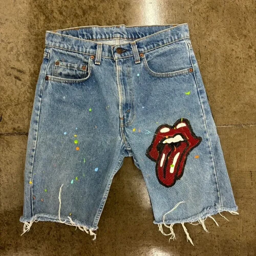 メンズバギーデニムショーツ,赤いリッププリント,生エッジ,美しいバスケットボールショーツ,特大のヒップホップスタイルのカジュアルパンツ,y2k服 y2k ボトムス T240901131740_01