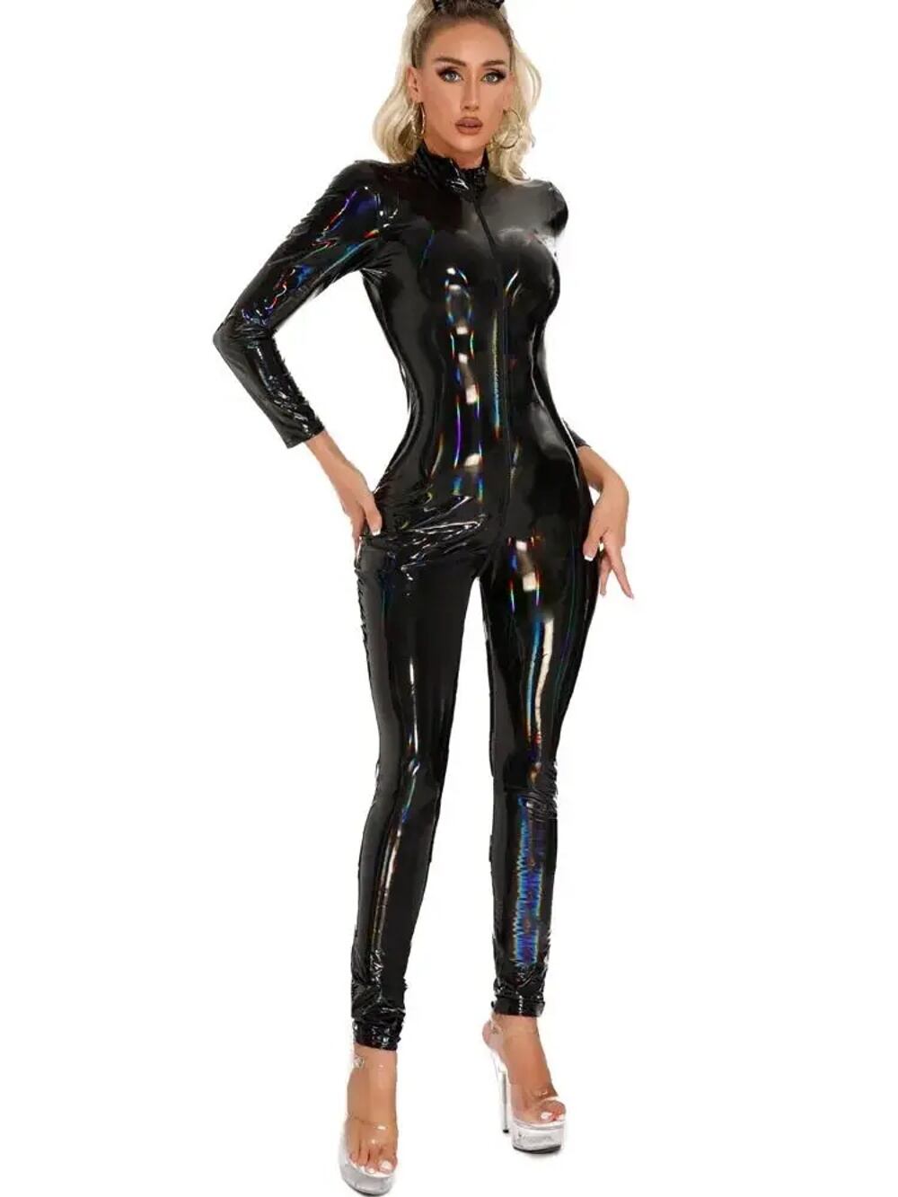 ユニセックスウェットスーツPVCキャットスーツ、長袖、光沢のあるPUレザー、ジッパー、オープンクロッチボディスーツ、タイツ、コスプレレオタード、セクシーなジャンプスーツ y2k ボトムス T240901232648_01
