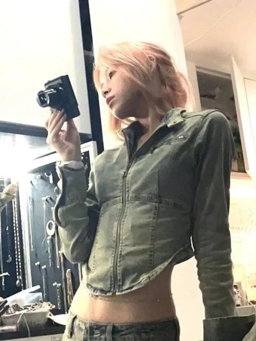 レディースヴィンテージショートデニムジャケット,原宿,レトロ,y2k,グランジ,スリム,ジッパー,韓国グレークロップドコート,ストリートウェア,ニューコレクション2021 y2k ボトムス T240901233952_01